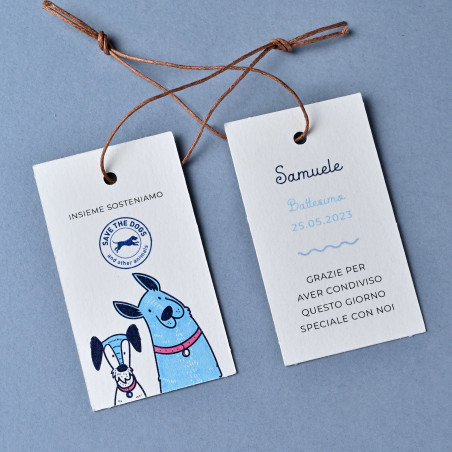 Biglietto forato con cordino da abbinare alle tue bomboniere. Personalizzabile.