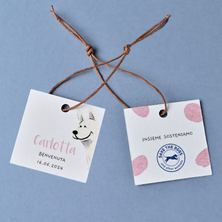 Biglietto bomboniera quadrato linea cane pastello bianco pippo